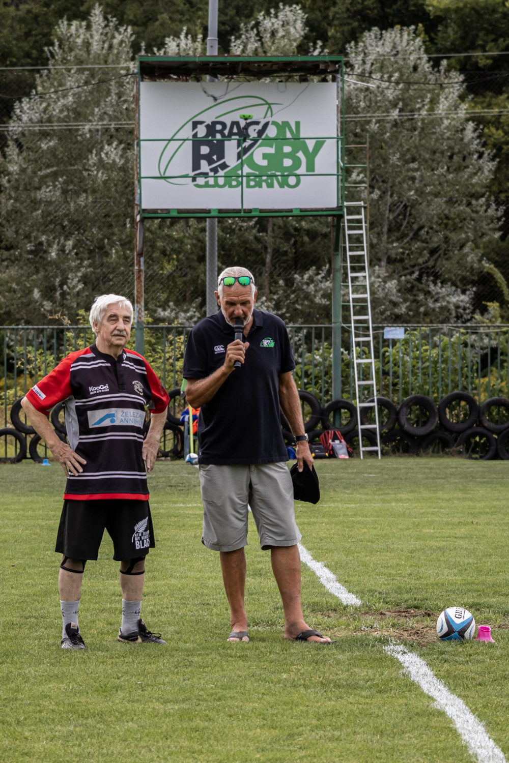 Dlouholetý fanoušek Dragonu a bývalý hráč rugby, pan Jaroslav Čížek, slavnostním výkopem zahájil první půli utkání, která byla velmi vyrovnaná.